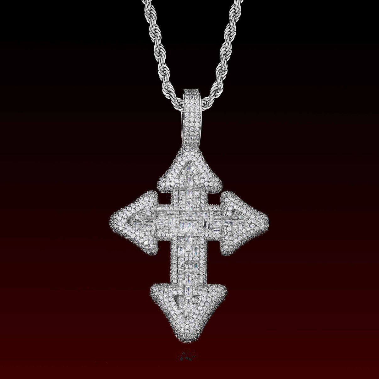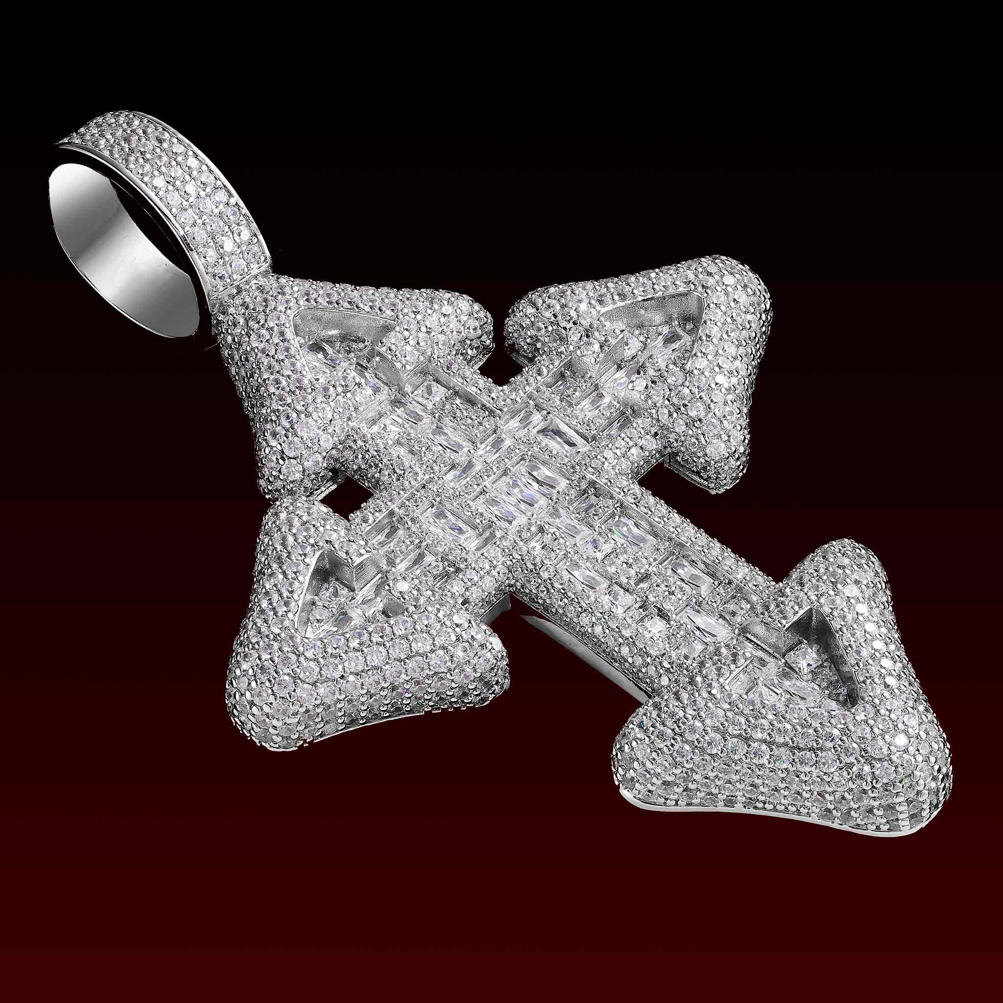 The clean lines of the baguette cuts create a high-end look, while the rounded bubble design adds depth and a modern hip-hop edge. Perfect for everyday wear or layering with Cuban and tennis chains, this iced-out cross is a must-have statement piece for any streetwear or hip-hop jewelry collection.
